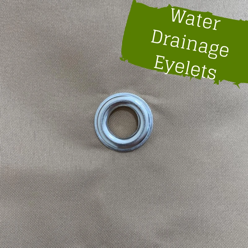 | Water drainage eyelets: | Yes – 2 on each long side and one on each short side |