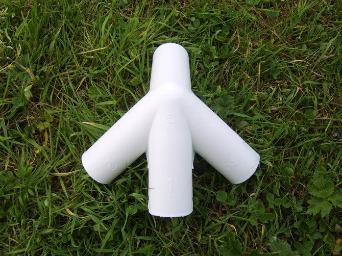 The Roof Corner Connector is the bracket located at either of the four top corners of the frame on many self-assembly gazebos. It is used to join together three roof poles and the leg pole.